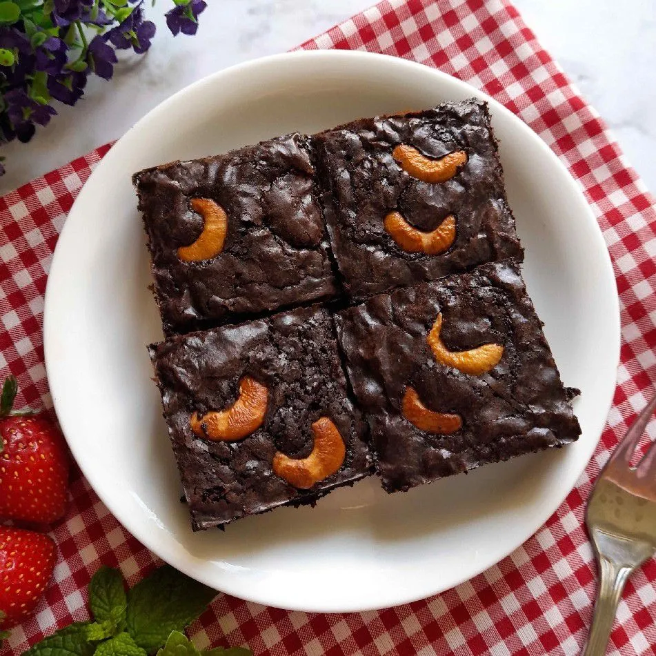 Tuang adonan ke loyang yang sudah dialasi baking paper,lalu tambahkan mede di atasnya yang sudah dibelah dua