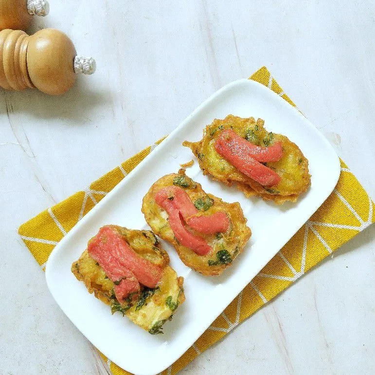 Kemudian, letakkan sosis diatas tempe menyerupai japitan sandal.