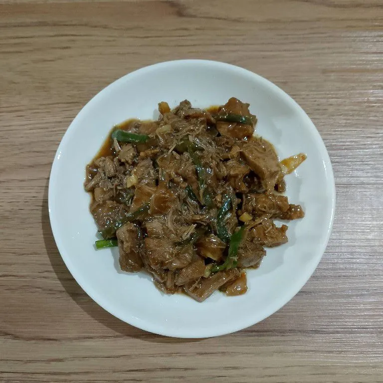 Beri air, cicipi dan masak sampai daging empuk serta kuah yang mengental. Angkat dan sajikan.